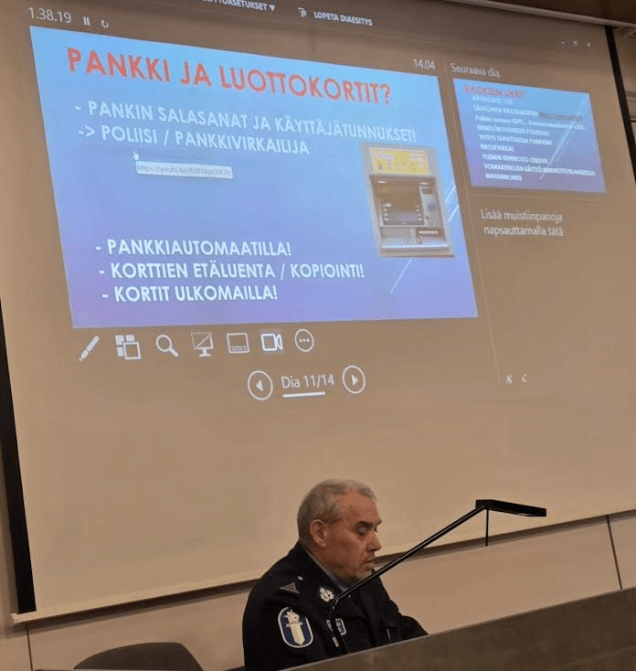 Eläkeliiton Koski Tl yhdistyksen päiväkerho kokosi POP pankin auditorion täyteen kiinnostuneita kuulijoita, kun ylikonstaapeli Pekka Mäkelä kertoi ”kaiken maailman huijareista.” Lisäksi jalkahoitaja Riitta Paju kertoi jalkojen hoidosta.